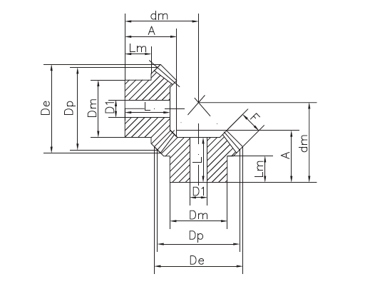 Coppie coniche denti diritti ad assi normali con mozzo laterale e angolo di pressione 20°