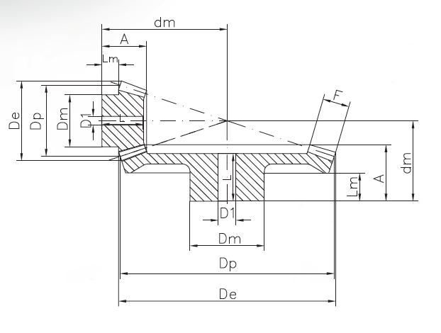 Coppie coniche denti diritti ad assi normali con mozzo laterale e angolo di pressione 20°